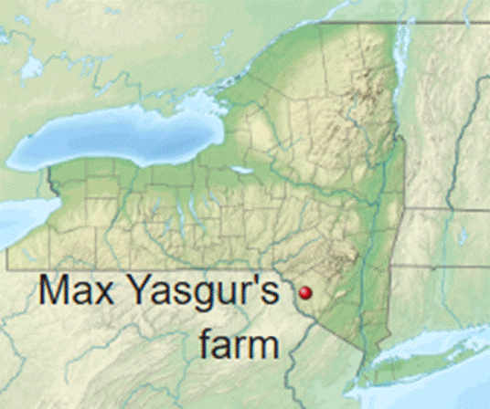 dairy farm in Bethel, New York, 60 miles southwest of the town of Woodstock.