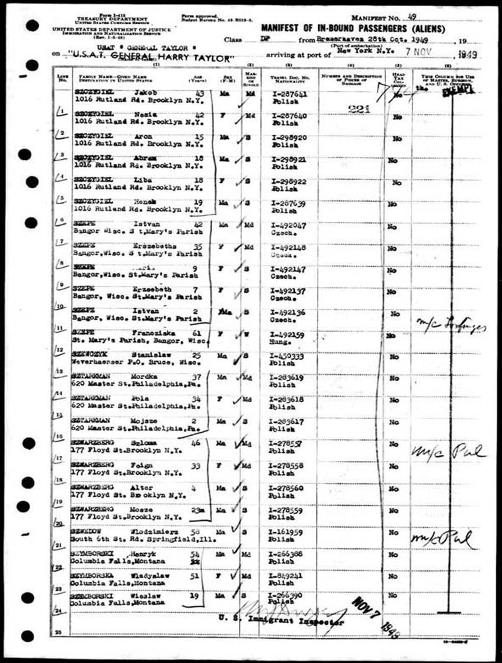* * Wife Mary’s family took this ship from Bremerhaven Germany to New York October 28 – November 7, 1949
