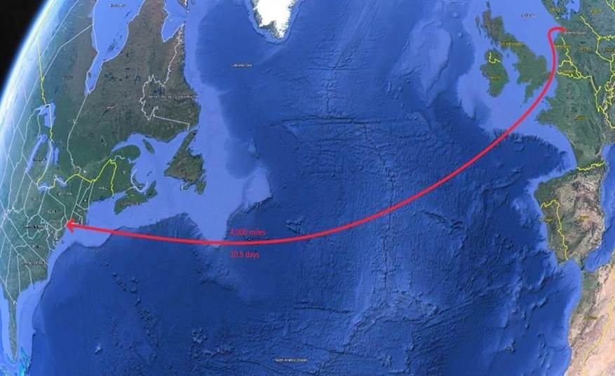 Route from Bremerhaven Germany to New York October 28 –